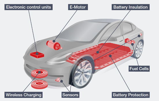 提供为混合动力汽车和电动汽车部件量身定制的不同产品。我们在浸渍树脂、柔性层压板和导线方面的丰富经验确保了电动汽车的这些重要部件的长期运行。